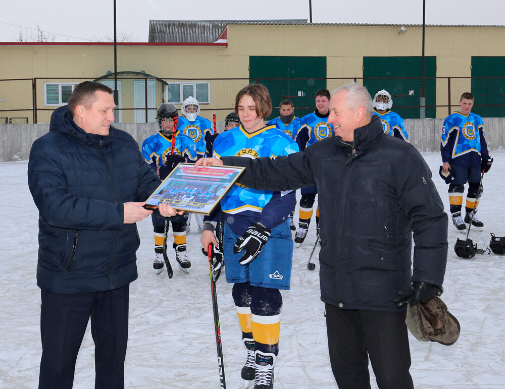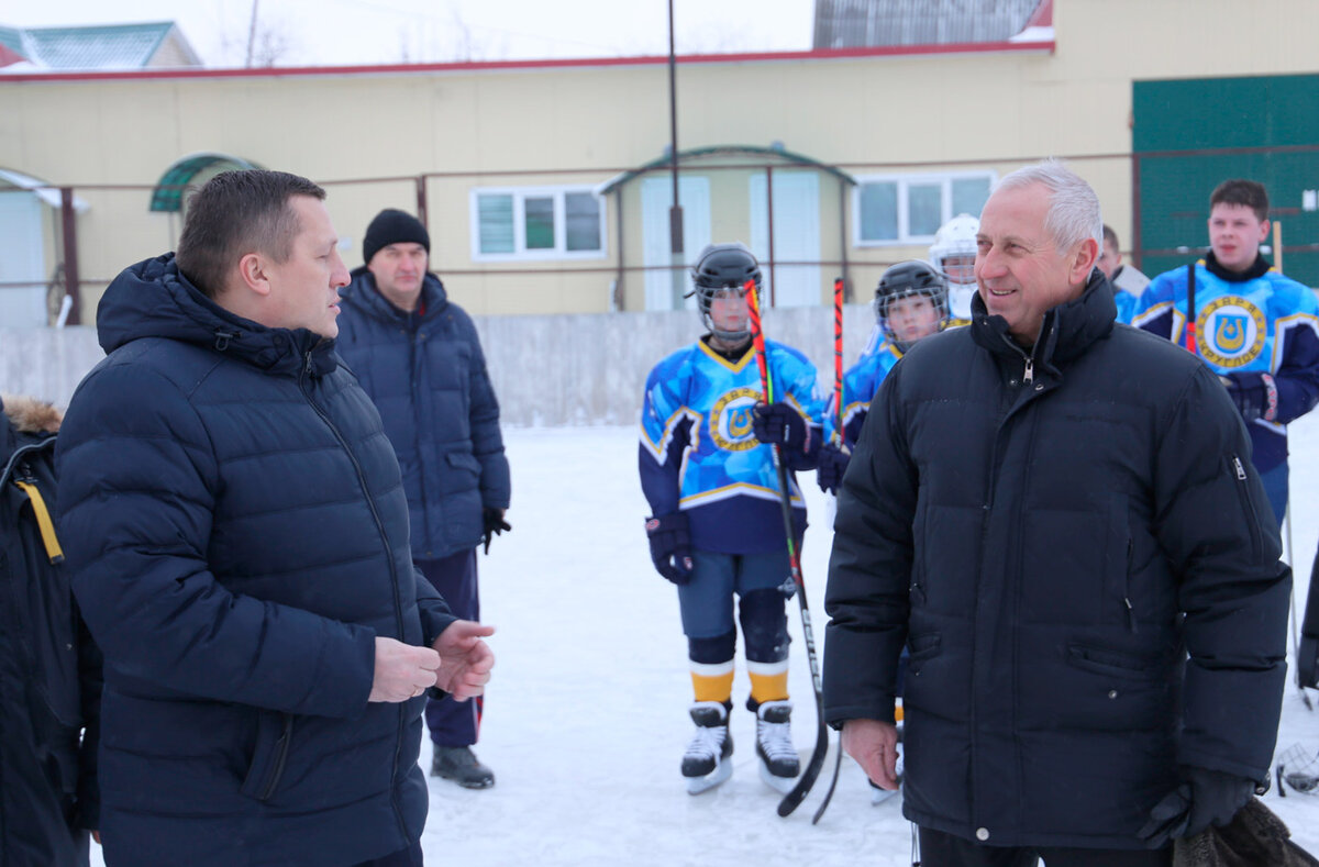 Сегодня председатель районного исполнительного комитета Степан Полонников и председатель районного Совета депутатов Сергей Храмцов побывали на тренировке хоккейной команды средней школы № 1 г. Круглое.