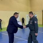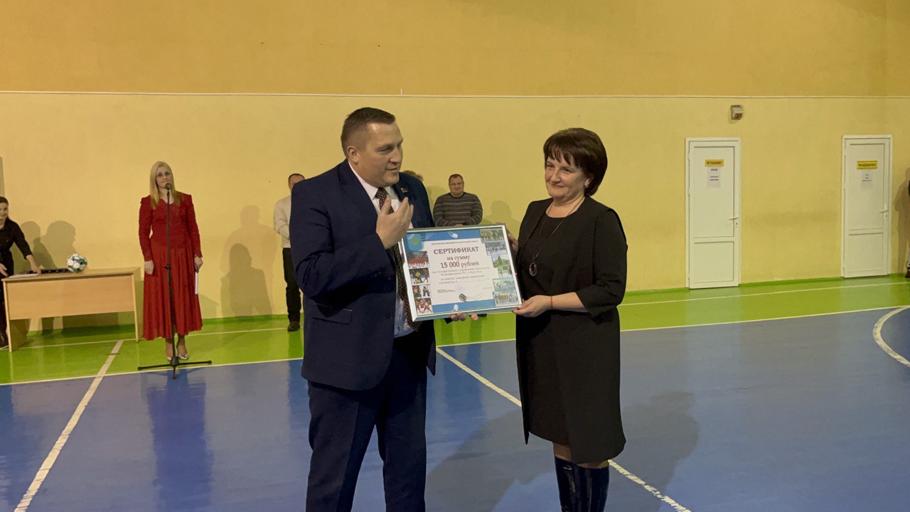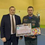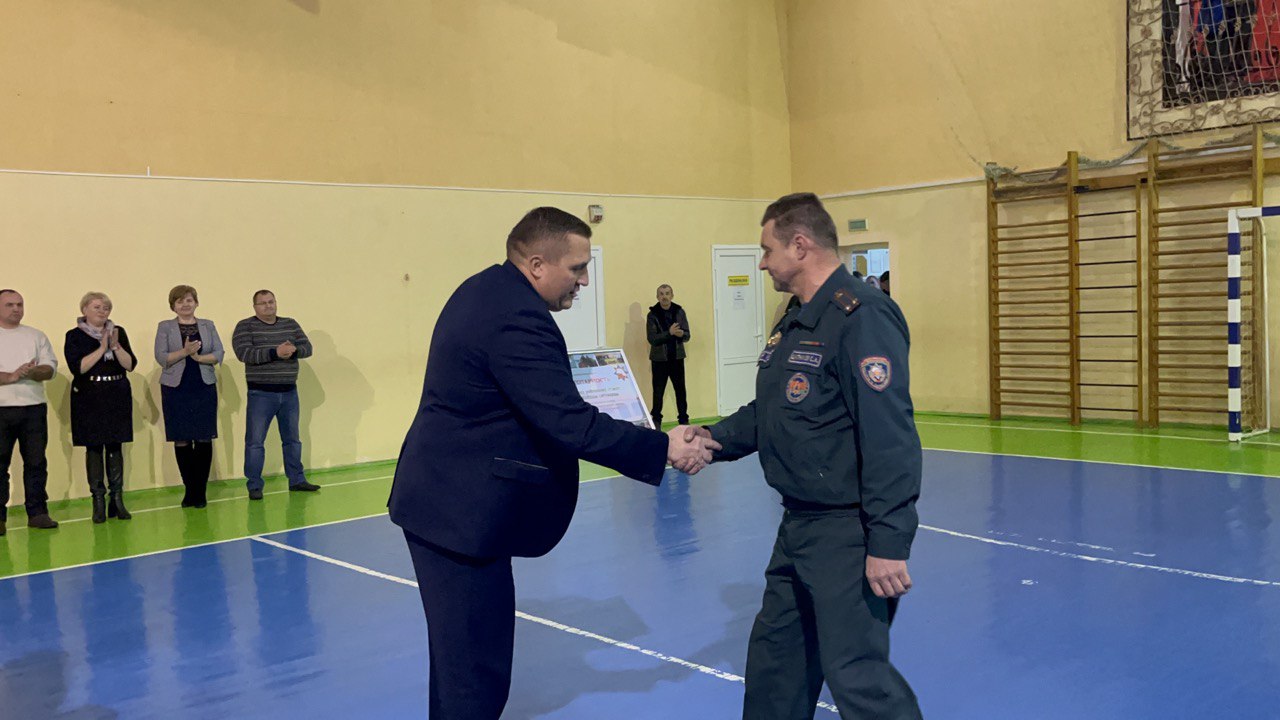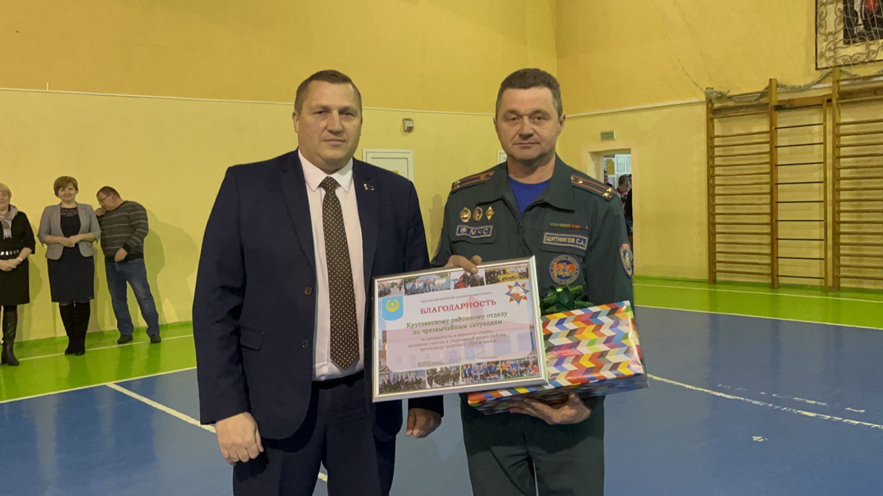 Он же вручает Благодарственное письмо коллективу РОЧС за преданность и верность спорту. Кроме того, сертификатом в размере 15 тысяч белорусских рублей на покупку экипировки отмечена хоккейная команда средней школы №1.