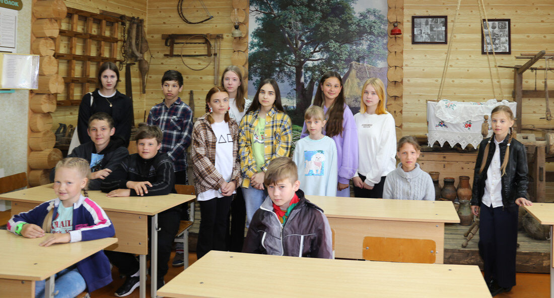 Автобус для поощрительной поездки был специально заказан в Белыничском автопредприятии. Первая остановка в агрогородке Тетерино. Здесь ребята возложили цветы благодарной памяти к братской могиле воинов-освободителей, к памятнику погибшим землякам. Председатель районной ветеранской организации Михаил Арашков поблагодарил юных активистов за участие в патриотических конкурсах, рассказал о цели организованной экскурсии. Главный специалист отдела идеологической работы, культуры и по делам молодежи райисполкома Елена Милевская проинформировала юных экскурсантов о проводимых на Круглянщине мероприятиях патриотической направленности, о предстоящих знаковых датах – Дне всенародной памяти жертв Великой Отечественной войны, Дне освобождения района от немецко-фашистских захватчиков и Дне Независимости Республики Беларусь. А вот младший научный сотрудник районного историко-краеведческого музея Дмитрий Шелковский помимо обозначенной темы героики Великой Отечественной войны затронул еще и историю древности – ведь населенный пункт Тетерин старейший в нашем регионе.