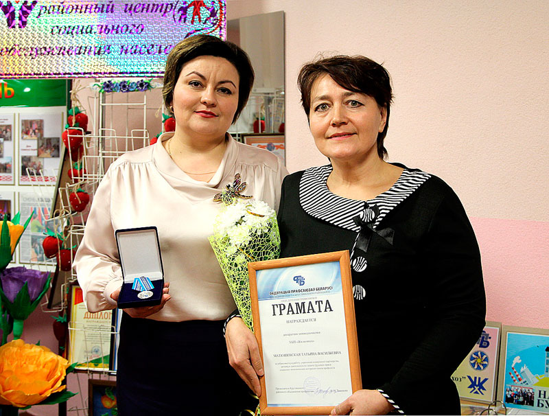 Конечно же, присутствовал и момент для души: чествование лучших из лучших профсоюзных активистов Круглянщины. Юбилейная медаль «115 год прафсаюзнаму руху Беларусі» вручена за многолетний добросовестный труд, активное участие в профсоюзном движении Александру Рылькову. За личный вклад в укрепление профсоюзного движения Почетной грамотой областного Совета профсоюзов награждена председатель районной организации профсоюза работников государственных и других учреждений Светлана Лебедева. Грамотами Совета районного объединения профсоюзов поощрены председатель райкома Белорусского профсоюза работников образования и науки Наталья Каравацкая, председатель профкома ГУО «Ясли-сад №1 г. Круглое» Наталья Решилова, ветеран профсоюзного движения из ОАО «Друть-Агро» Валентина Зайковская, член профкома УКП «Жилкомхоз» Татьяна Матюшевская, казначей первичной профорганизации отдела идеологической работы, культуры и по делам молодежи райисполкома Наталья Бужинская и председатель профсоюзной «первички» УЗ «Круглянская ЦРБ» Анастасия Смолякова.