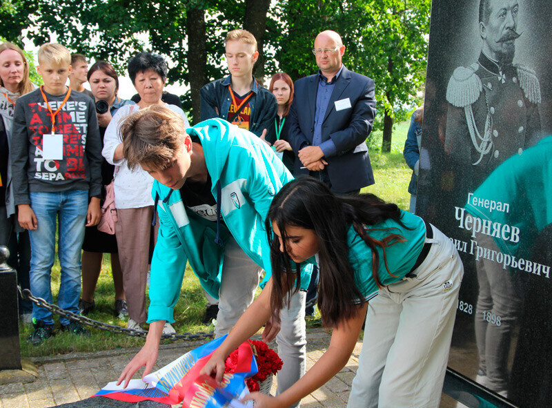 С 12 по 15 июля на Могилёвщине проходит Международный форум по созданию, развитию и укреплению связей между детскими и юношескими дипломатическими клубами и объединениями, детскими общественными организациями России, Беларуси, Узбекистана, Сербии «Зелёный посол». Сегодня его участники посетили Круглянский район. Для них была организована экскурсия по дому-музею художника-передвижника Н.В. Неврева, музею СССР, а также в д. Тубышки к месту бывшей усадьбы генерала М.Г. Черняева и в Круглянский районный историко-краеведческий музей, где, согласно программе форума, особо подробно посетителям была представлена тема «Семья Черняевых. М.Г. Черняев».