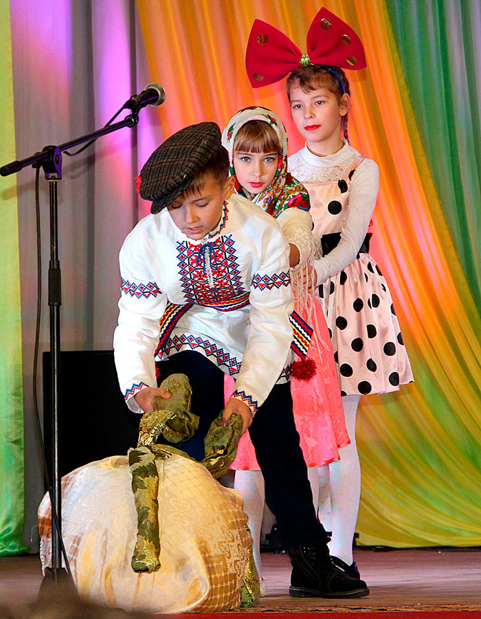 За кулисами звучит дикторский текст сказки о маленькой девочке по имени Дюймовочка, а на большой мультимедийной установке мелькают кадры из мультфильма, положенного в основу конкурса. Со сцены объявляется, что сегодня зрители увидят не одну, а сразу несколько Дюймовочек. А это – участница под №1 Мария Квачкова (Тетеринский УПК), №2 – Наталья Мазок (СШ №1 г. Круглое), №3 – Дарья Гончарова (Кручанский УПК), №4 – Милана Семченко (СШ №1 г. Круглое). Всех их в течение конкурсной программы оценивало компетентное жюри и искренне поддерживали многочисленные болельщики.