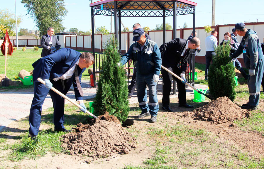 Затем для гостей и ветеранов труда провели экскурсию по обновленной производственной территории. Также в этот день в честь открытия базы РГС была высажена аллея туй.