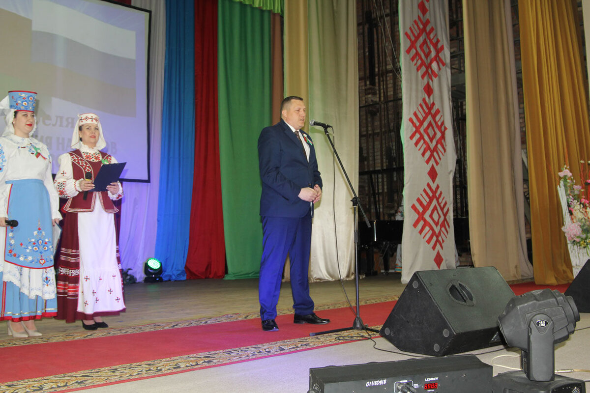Сегодня в Круглом прошла торжественная праздничная программа, приуроченная ко Дню единения народов Беларуси и России. Собравшихся в зале РДК круглянцев  поздравил председатель районного исполнительного комитета Степан Полонников.