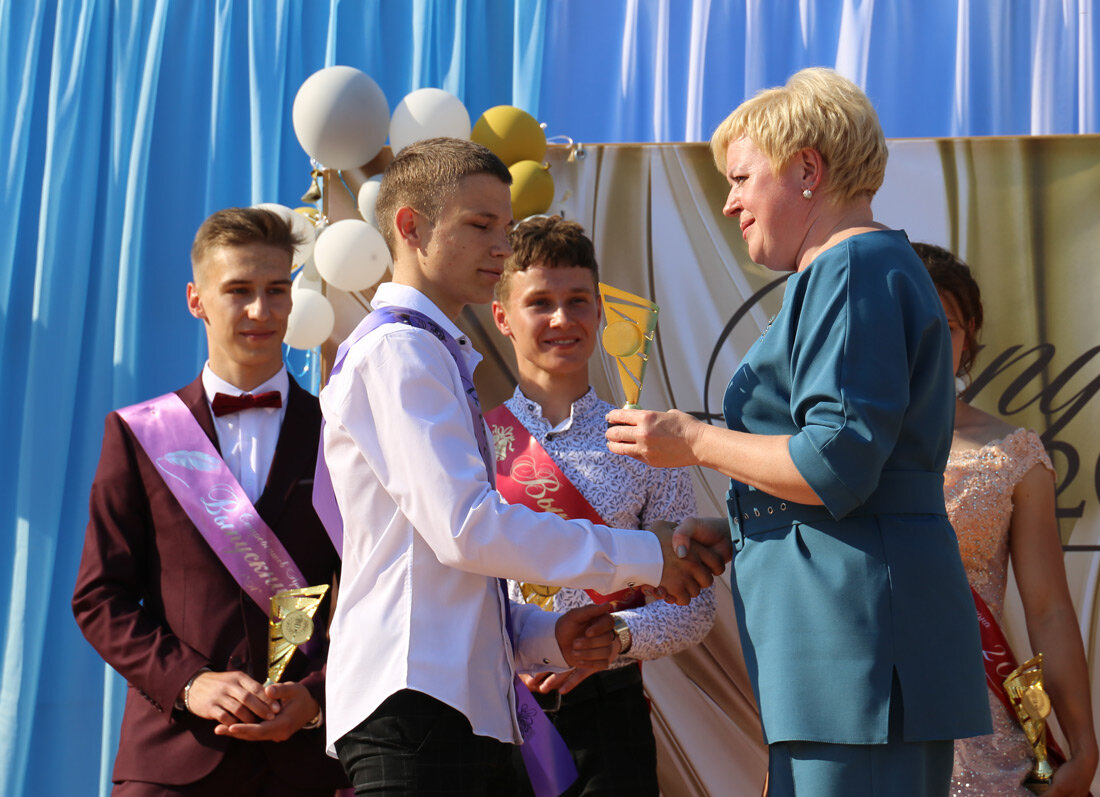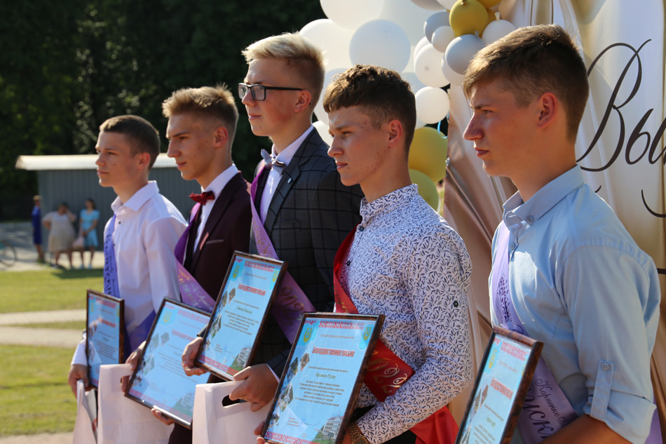 Далее – самая волнительная часть официального мероприятия – чествование «золотых» медалистов. Этот год стал для нас «весьма урожайным». Всего выпускников одиннадцатых классов 109. Высшие школьные награды – золотые медали – получают из рук главы районной вертикали власти Степана Полонникова 15 юношей и девушек. Наибольшее количество медалей у средней школы №1 г. Круглое – награждены восемь учащихся, затем средняя школа № 2 –четыре, по одному из Рубежского, Комсеничского и Филатовского УПК.