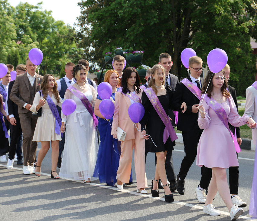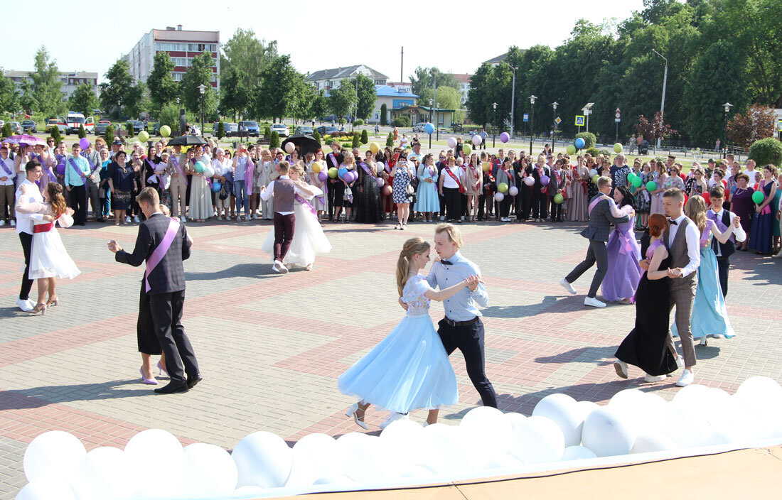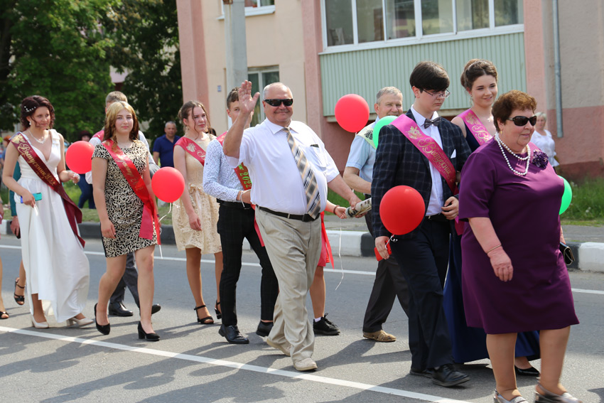 Именно здесь располагалась главная сцена, которая стала местом притяжения не только нарядных ребят, но и их родителей, классных руководителей, директоров школ. Зрителей было очень много: казалось, вся Круглянщина растянулась вдоль улицы Советской, приветствуя вчерашних школьников.
