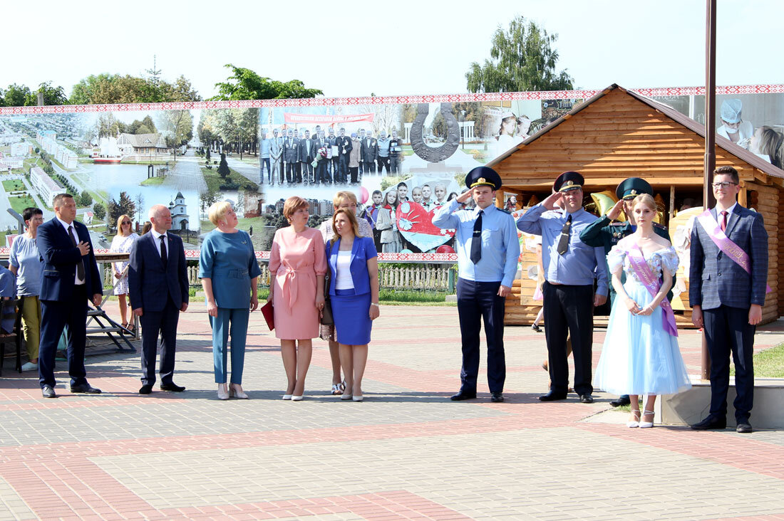 Звучит Гимн Республики Беларусь. Торжественно поднимается Государственный Флаг Республики Беларусь. Праздник начинается…