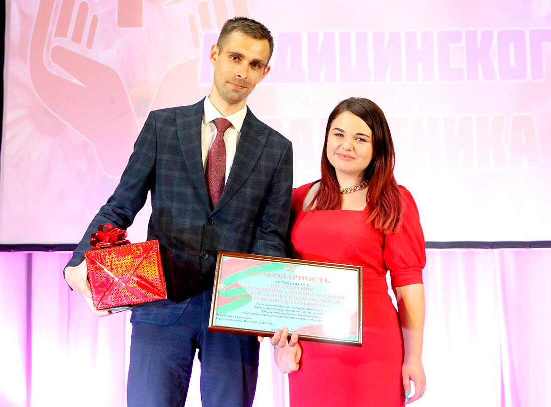 В этот день с главной районной сцены звучали поздравления и от райкома ОО «Белорусский республиканский союз молодежи». Благодарность за плодотворное сотрудничество коллективу учреждения здравоохранения первый секретарь районной организации ОО «БРСМ» Виктория Спичакова вручила главному врачу УЗ «Круглянская ЦРБ» Максиму Беганскому, за личный вклад в реализацию проектов и программ ОО «БРСМ» – секретарю первичной организации учреждения Наталье Федорович.