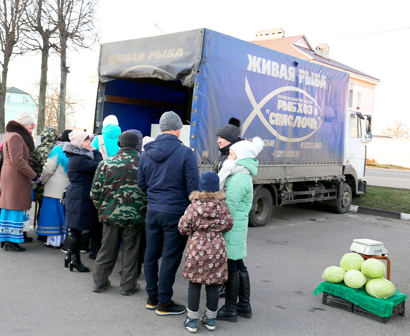 Большие очереди собрали вокруг себя спецавтомобили ОАО «Александрийское» и рыбхоза «Свислочь», где активно шла торговля мясными изделиями и живой рыбой соответственно.