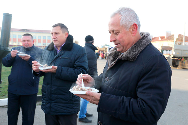 Организаторы в лице специалистов райисполкома позаботились о том, чтобы люди, пришедшие на ярмарку, смогли насладиться разнообразной концертной программой. Как всегда, работники культуры были просто на высоте. Жителям Круглого и многочисленным гостям предложили попробовать настоящую солдатскую гречневую кашу и наваристую уху, для чего из одной из воинских частей «командировали» в Круглое даже передвижную полевую кухню.
