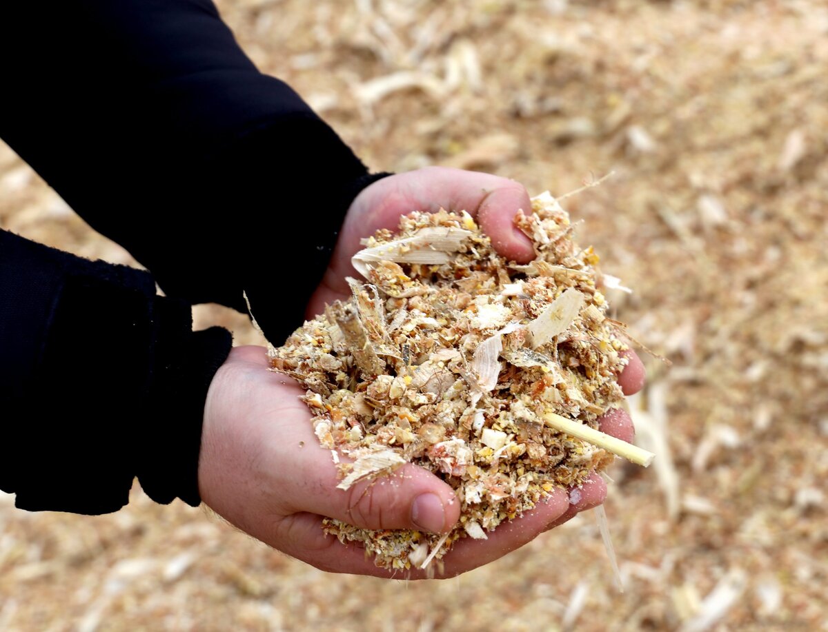 Речь идет о корнаже. Это – измельченное вместе со стержнем зерно кукурузы. Соответствующая приставка с приобретенным районом дополнительным оборудованием установлена на современный КВК.
