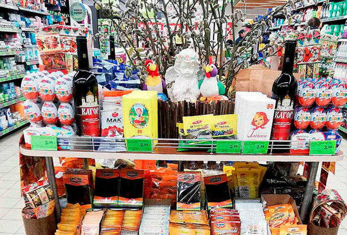 Заранее подготовились к приближению Светлого Христова Воскресенья и в торговых объектах нашего района, оформив для покупателей красивые пасхальные уголки, не заметить которые действительно сложно. Здесь и сладости, и куличи, как и всё необходимое для их выпечки и украшения, красители и наклейки для пасхальных яиц, послания с поздравлениями и многое другое.