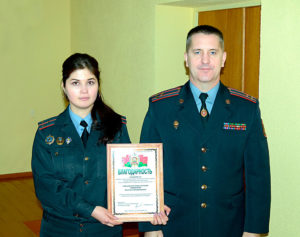 Нельзя не отметить, что на протяжении многих лет, в том числе и по итогам года минувшего, Круглянский РОВД входит в число лучших в области. Удерживать высокие позиции позволяет то, что в коллективе трудятся настоящие профессионалы, люди, преданные своему делу. За высокие показатели в служебной деятельности и иные достижения ряд сотрудников отмечен на уровне управления внутренних дел обл-исполкома. Так, Благодарность УВД Александр Германович в торжественной обстановке вручил старшему инспектору группы по гражданству и миграции Елизавете Новиковой, участковому инспектору милиции Вениамину Побединскому, оперуполномоченному отделения уголовного розыска Леониду Ганакову. Старшему инспектору по обеспечению общественного порядка ООПП Игорю Позднякову присвоена классная квалификация «Специалист II класса» с вручением соответствующего нагрудного знака и очередное звание «капитан милиции». Очередные специальные звания младшего начальствующего состава «прапорщик милиции» получили помощник дежурного ОДС Борис Мельников и милиционер-дежурный ИВС Иван Юрченко.