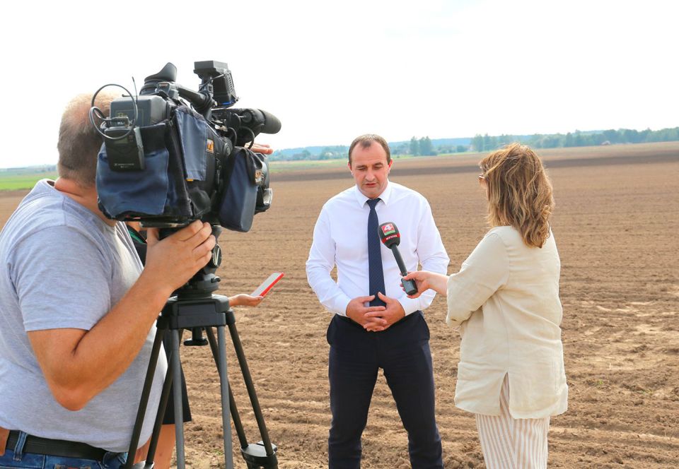 В этот день первый заместитель председателя облисполкома Сергей Савицкий и глава района Сергей Ермолицкий также пообщались с тружениками передового хозяйства – Николаем Бабарикиным и Сергеем Осипёнком, которые на соседнем поле ожидали загрузки своих машин зерном нового урожая.
