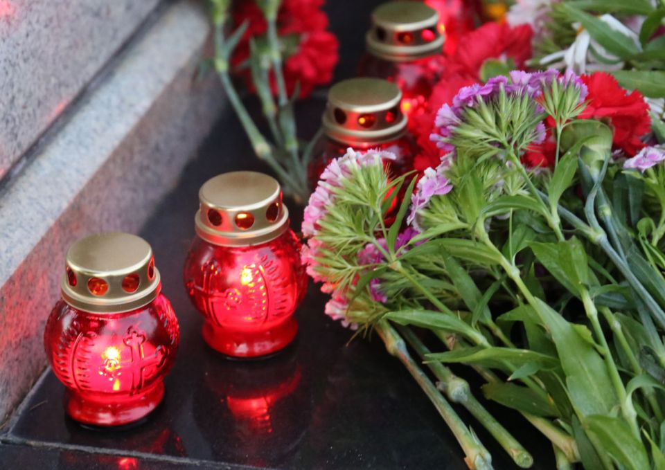 Объявляется минута молчания. Затем к подножию братской могилы подносятся зажжённые свечи, возлагаются живые цветы.