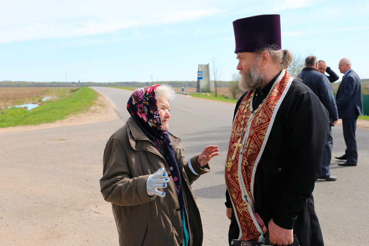 К слову сказать, в деревне Глубокое к памятному месту пришли и жители деревни. По завершении чина освящения Креста протоиерей Геннадий обратился к собравшимся с пастырским словом, в котором рассказал о значении Креста в жизни православного христианина.