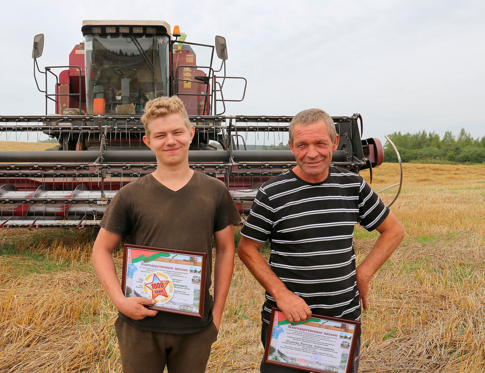 В. Шляпов – человек в сфере АПК не новый: общий стаж работы в сельском хозяйстве насчитывает порядка двадцати лет. В КСУП «Круглянский-Агро» за ним закреплён МТЗ-82. В разные поры года он, как механизатор, задействован в различных видах работ (на подвозке семян к сеялке, воды на фермы и др.). А на период жатвы, когда дополнительные силы особенно нужны на колосистых полях, пересел на комбайн. Что касается помощника комбайнера их экипажа Д. Письменова, то у него, в силу совсем ещё молодого возраста, конечно же, опыта пока маловато. Трудоустроился в хозяйство в июне этого лета. Но несмотря на это, со своими обязанностями Дмитрий справляется хорошо.