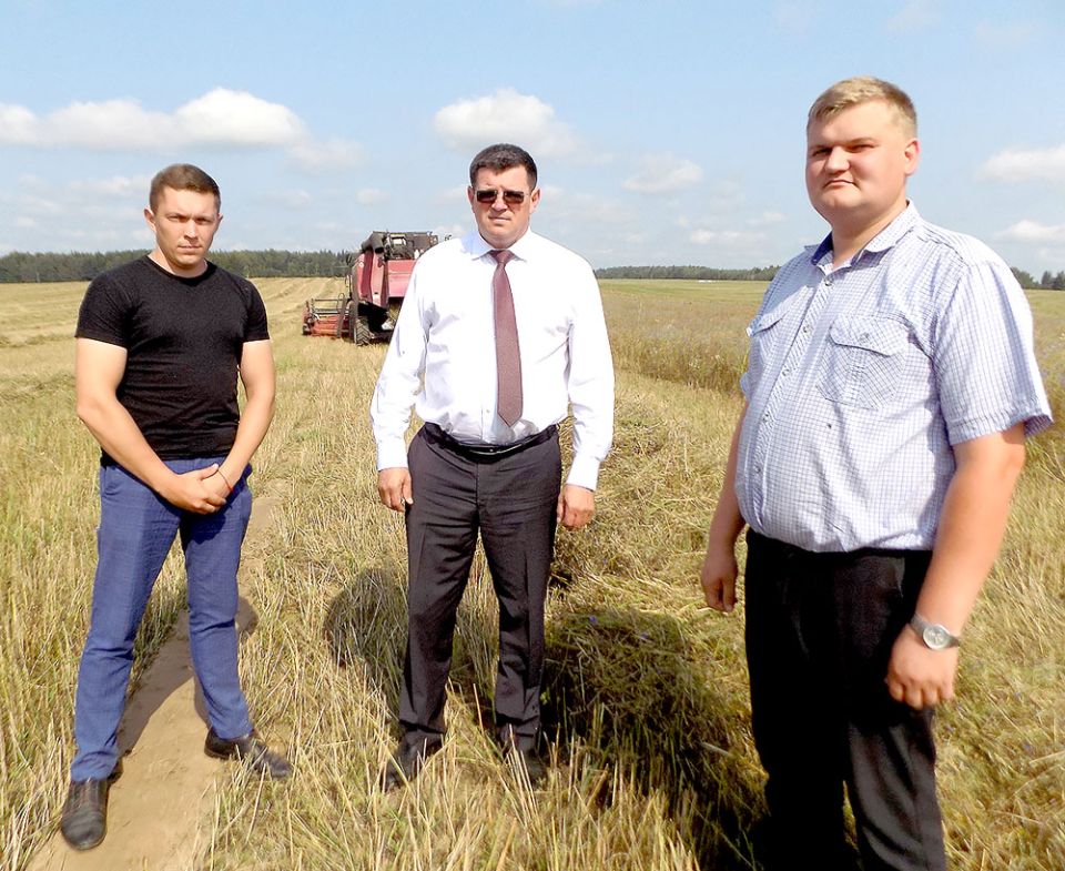 Тёплым июльским полднем на отдалённое поле между деревнями Лесные и Зубово прибыли проинспектировать качество уборки председатель Круглянского райисполкома Сергей Ермолицкий, директор ОАО «Друть-Агро» Дмитрий Лубочкин и заместитель директора Максим Круглов. По словам руководителя хозяйства Дмитрия Лубочкина, обмолот озимой сурепицы должен завершиться ближе к вечеру уже сегодня.