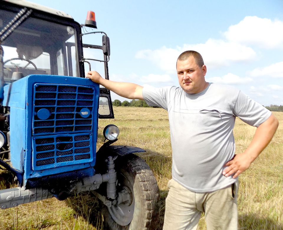 На отвозке семян сурепицы по маршруту «поле-ток» на тракторе МТЗ-82 занят трудолюбивый и ответственный механизатор Виталий Маковецкий. Он тоже находился в поле, ожидал, когда наполнится бункер комбайна.