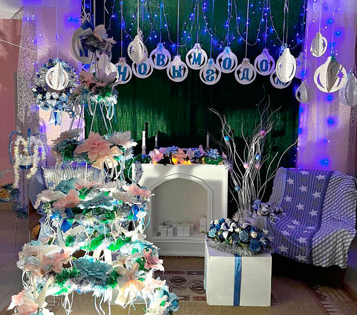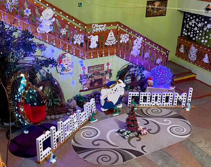 Но обо всем по порядку. Объезд проходил на протяжении двух зимних вечеров – в один вечер непросто всё внимательно осмотреть. Начали с Рубежской средней школы. Еще издали заметно сияние огней. Каждое окошко приветствовало гостей ярким разноцветием. Не менее красиво и внутри школы: подвесной потолок из снежинок, интересно оформленные фотозоны при входе. Словом, рубежские педагоги и удивили, и порадовали одновременно. Представьте – сияла не только сама школа, но и прилегающая территория. Подходишь, и словно окунаешься в настоящую зимнюю сказку.