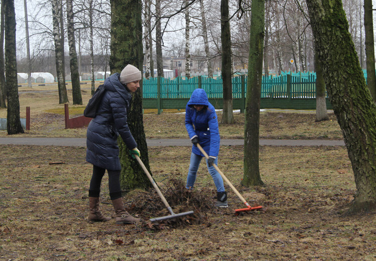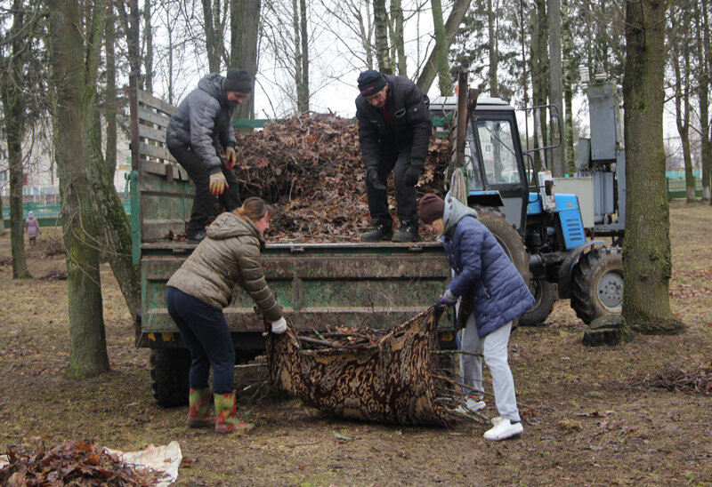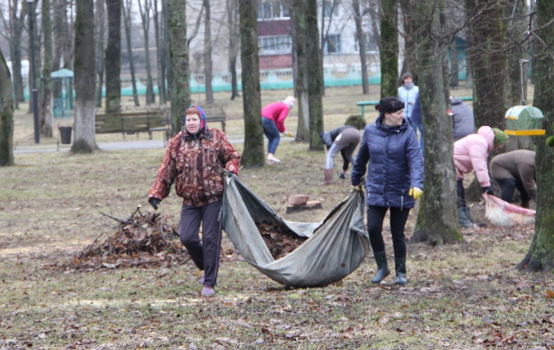 Представители дошкольных учреждений района, библиотечной системы, УКП «Жилкомхоз» и др. чистоту наводили непосредственно в центральном парке культуры и отдыха, где убирали старую листву и порубочные остатки.