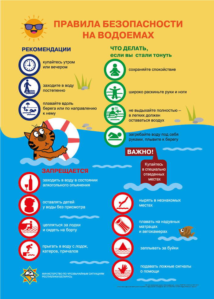 - Не купаться в состоянии алкогольного опьянения, не нырять с мостов, пристаней и других мест.