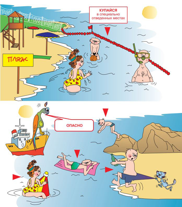 - Не отплывай далеко от берега, не заплывай за предупредительные знаки (разметку, буйки).