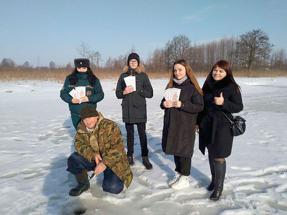 На минувшей неделе молодёжная команда «зимнего патруля» посещала известные места нашего города, где особенно любят посидеть с удочками здешние рыболовы. Вместе с сотрудницами РОЧС Евгенией Мартыновой и Юлией Теличкун в составе пропагандистской группы работали первый секретарь РК ОО «БРСМ» Виктория Спичакова и девятиклассники СШ №2 г. Круглое Валерия Кубеко и Иван Старовойтов.