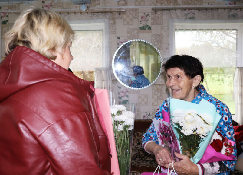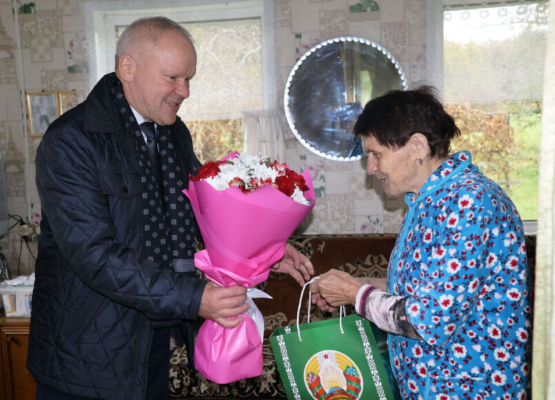 Гости вручили имениннице благодарственное письмо от имени главы района Ивана Багеля, подарки и цветы по случаю знаменательного события в жизни. Также к многочисленным поздравлениям присоединились работники социальных служб района, представители РО ОО «Белая Русь», РК ОО «БРСМ».