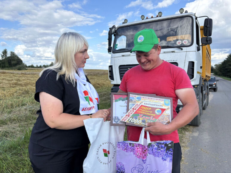 Слова признательности за добросовестный труд адресовали хлеборобам директор сельхозпредприятия Юрий Евсеев, председатель профсоюзов АПК Алла Станкевич, председатель РО РОО «Белая Русь» Елена Чудакова, ответственные специалисты хозяйства.