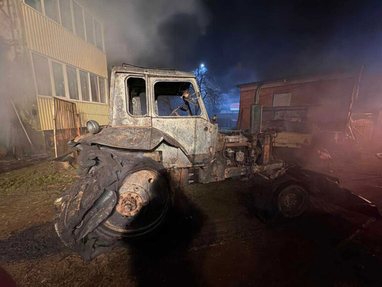 В агрогородке Старое Радча горели хозяйственная постройка и трактор
