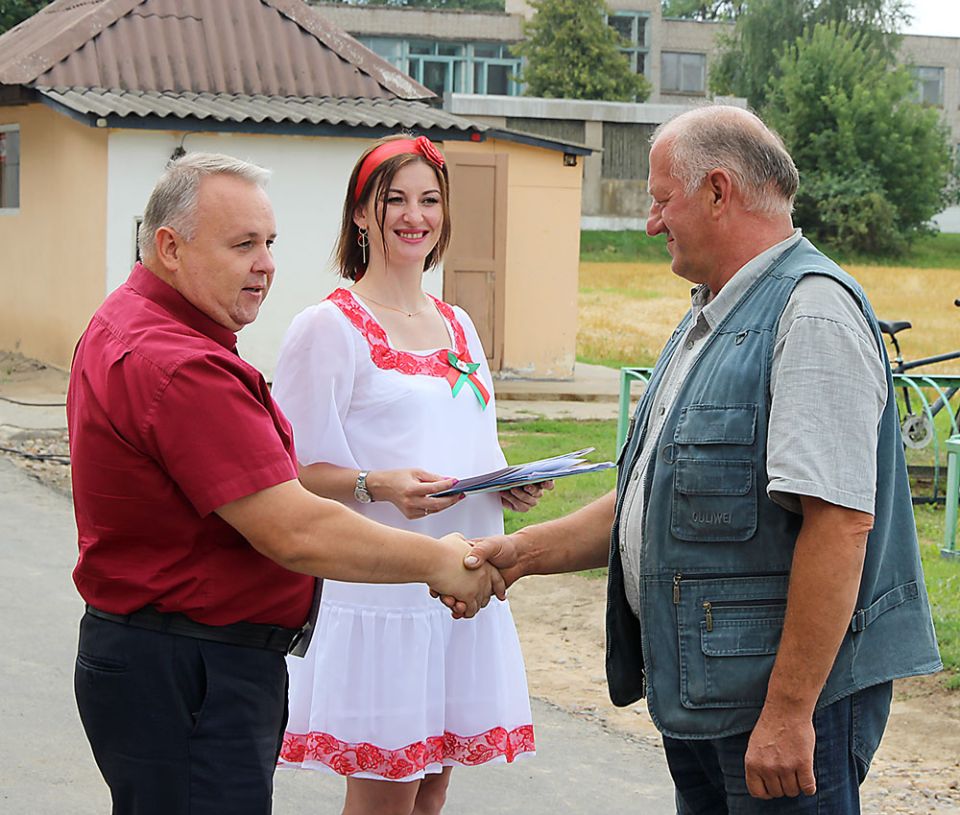 Со словами искренней признательности за труд и заслуженными наградами все производственные и социальные объекты, на которых трудятся сегодня работники ГУКДСП «Круглянская ПМК №266», в преддверии Дня строителя посетил начальник предприятия Виталий Шумейко со своими помощницами – председателем профкома Вероникой Голубович и кассиром Натальей Кунец.