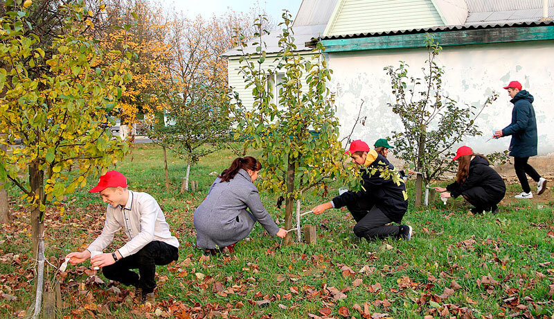 Во второй половине дня учащихся двух городских школ объединила молодёжная трудовая акция под хэштегом #ЗаДело, также приуроченная ко дню рождения ВЛКСМ. Вместе с первым секретарём РК ОО «БРСМ» Викторией Спичаковой ребята занимались побелкой деревьев, посаженных возле памятника воинам 222-й Смоленско-Бранденбургской Краснознаменной ордена Суворова стрелковой дивизии.