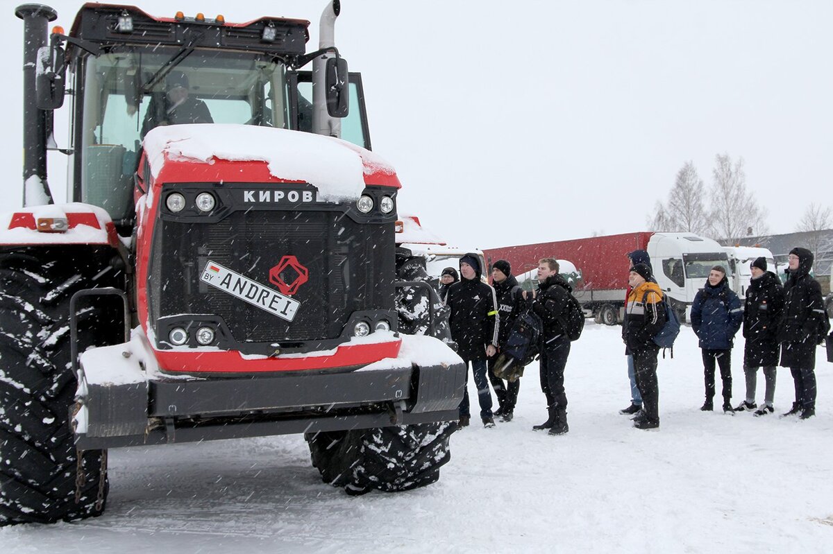 Далее у ребят была экскурсия по производственной базе ОАО, где их сопровождали непосредственно руководитель В. Мартынов, заведующий ремонтной мастерской В. Киреева и другие специалисты предприятия. Больше всего старшеклассников привлек энергонасыщенный трактор, который они не просто могли посмотреть, узнав обо всех его функциях, но и попробовать в деле, посидев в кабине и даже прокатившись вместе с трактористом по территории базы.
