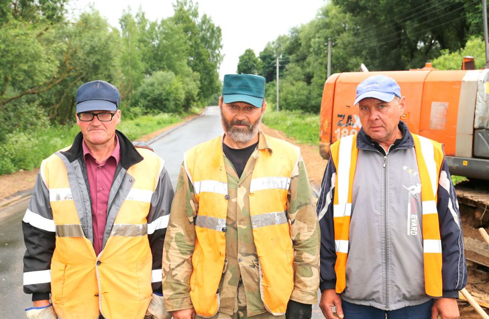 В день, когда мы посетили производственные объекты ДРСУ-214, бригада по текущему ремонту трудилась на обустройстве новых оголовков на железобетонной трубе в деревне Павлово. В адрес своих рабочих – Александра Бильченкова, Василия Хаманеева, Дмитрия Гронского, Виктора Спиридонова, водителя Олега Блинова – мастер Андрей Бекешко говорил только искренние слова благодарности за нелегкий труд: «Это настоящие профессионалы своего дела, очень ответственные специалисты».