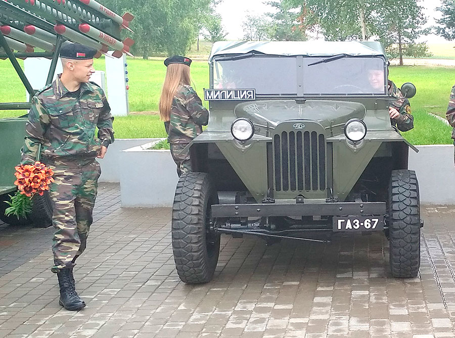 Экскурсия началась с посещения Памятника батальону милиции под командованием капитана К.Г. Владимирова в деревне Гаи Могилевского района, где ребят встретили заместитель начальника областного управления Департамента охраны майор милиции А.А. Вилента и председатель областного совета ветеранов ОВД и ВВ, полковник милиции Е.Е. Коваленок, который рассказал ребятам об обороне г. Могилева в 1941 году.