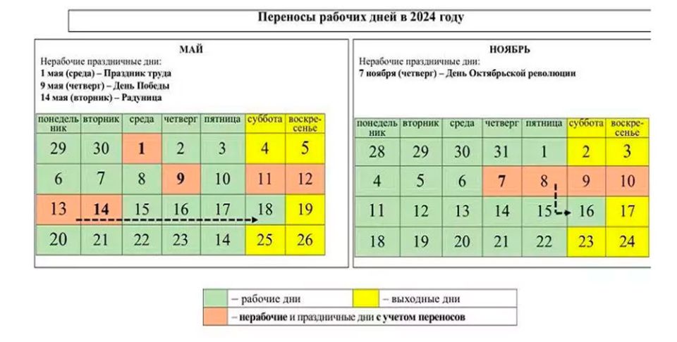 Совет Министров Беларуси определил график переноса рабочих дней в 2024 году.