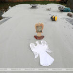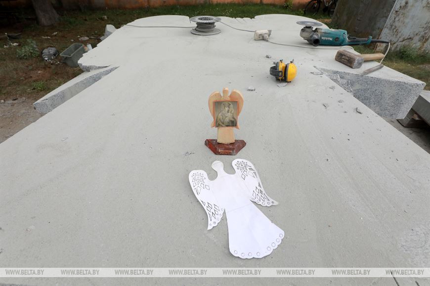 «Сейчас на граните уже хорошо видны контуры ангела. По планам, он будет держать Белыничскую икону Божией Матери, как бы обнимая ее крыльями. В ближайшее время я начну украшать крылья. На них появится узор, похожий на вытинанку, — поделился планами скульптор. — Икона будет бронзовой. Она уже почти готова».