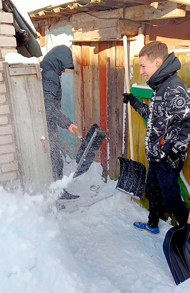 Буквально позавчера наши брсмовцы, волонтёры ГУО «Средняя школа №1 г. Круглое» помогали с расчисткой снега во дворе семье ветеранов труда Александра Максимовича и Елизаветы Ивановны Выдумчик, проживающих по ул. Октябрьской, 19, где, собственно говоря и сделаны эти снимки. Ребята не только старательно помогли пожилым людям, но и с удовольствием пообщались с Александром Максимовичем, который родился в 1939 году, всю жизнь проработал в сельском хозяйстве и многое может им рассказать о былом и пережитом.