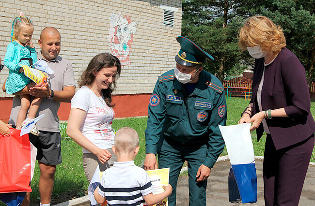 А потому днями группа представителей оргкомитета во главе с начальником РОЧС Сергеем Щитниковым посещала данное учреждение дошкольного образования с почётной и весьма приятной миссией – поблагодарить администрацию и воспитанников за интереснейшие идеи и неравнодушный творческий подход к вопросам безопасности жизнедеятельности, и, конечно же, вручить ребятишкам заслуженные награды.