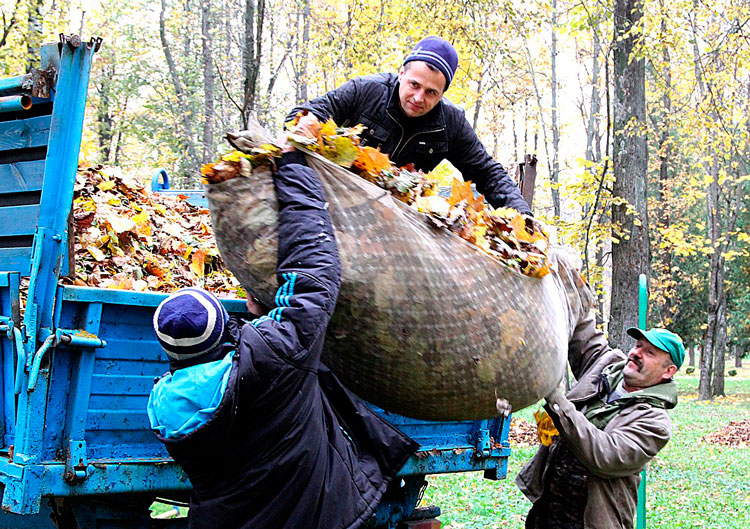 Не зря говорят в народе, что в осень – работ восемь. Хотя, на самом деле их, конечно же, намного больше. Одни только щедро сыплющие позолотой деревья сколько хлопот прибавляют. Да уж, и никуда от них не денешься. В садах и рощах, парках и скверах, на улицах и дворах листья стелются пышным ковром, всё прибавляясь и прибавляясь. Как раз вот из этого богатейшего ковра стараниями всех тех, кто принимал участие в уборке городского парка, набралось несколько десятков объемных куч. Собранные «дары осени» тут же грузились в прицепы тракторов для дальнейшей их утилизации. К слову, на отвозке была задействована техника коммунальников. Также перед всеми организациями района ставилась задача навести надлежащий порядок на закреплённых территориях.