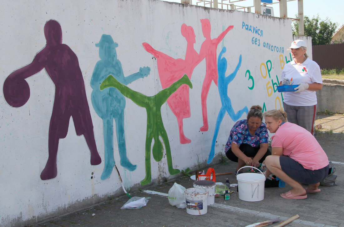 В четверг по инициативе работников отдела идеологической работы, культуры и по делам молодежи райисполкома в г. Круглое прошла акция «Сделаем наш город краше». Местом проведения выбрана стена по пропаганде здорового образа жизни у магазина «Евроопт». Инициаторы совместно с работниками Дома ремесел, детской школы искусств «оживили» яркими красками граффити, которые были нарисованы несколько лет назад.