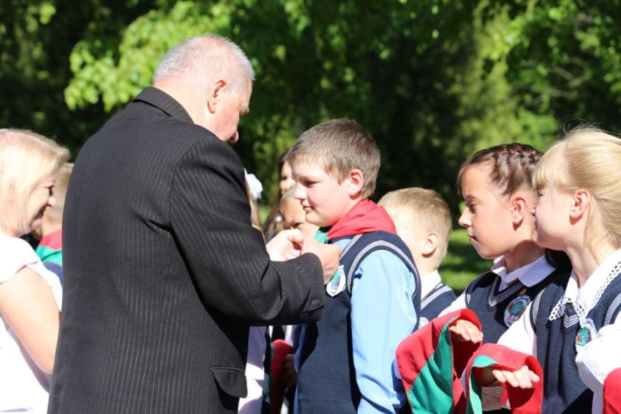 На торжественной линейке присутствовали начальник отдела идеологической работы и по делам молодежи райисполкома Сергей Лазовский, председатель районной ветеранской организации Михаил Арашков и ответственный секретарь Лидия Сазанович, председатель районного совета ОО «БРПО» Наталья Роговицкая. Почетные гости поздравили ребят с новым званием «пионер», пожелали быть патриотами своей Родины, а также крепкого здоровья и успехов в учебе.