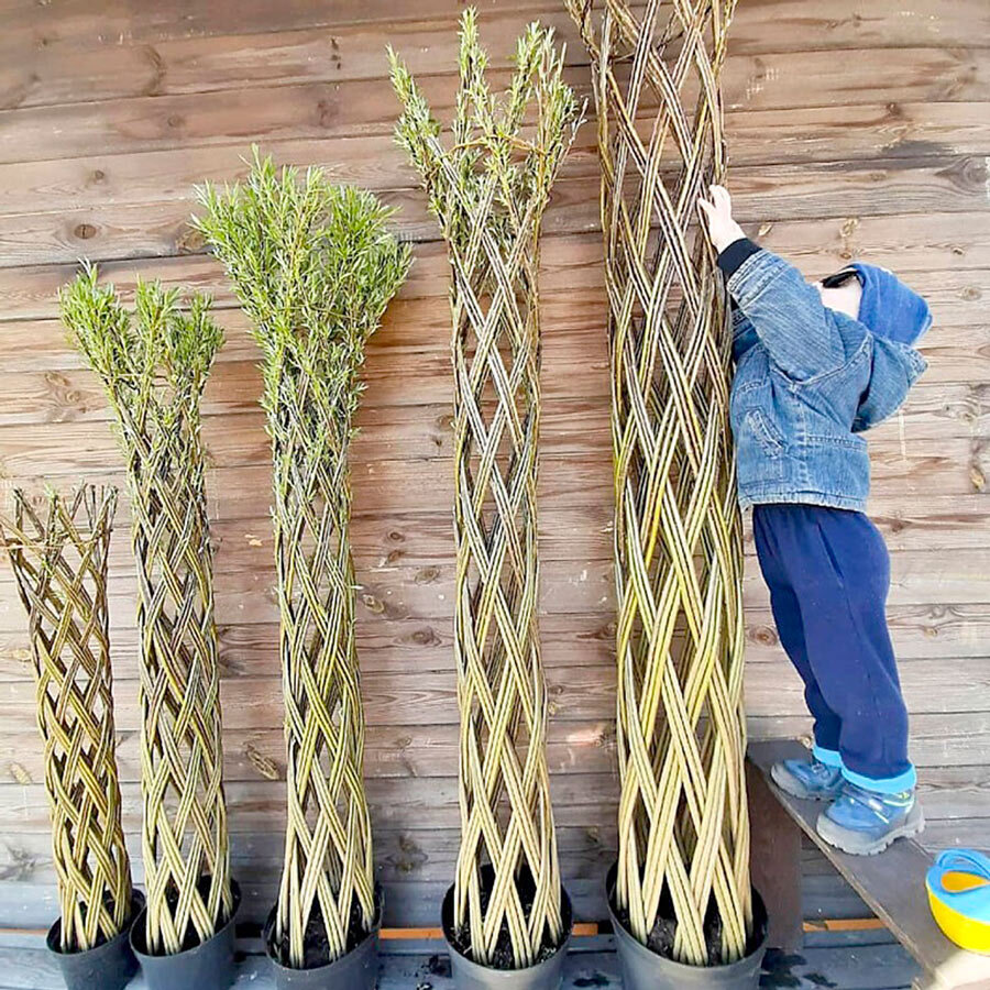 К слову, одно плетеное дерево состоит из 42 прутьев. Высота их бывает разной. Все будущие заготовки сортируются по длине и толщине. На плетение одного двухметрового дерева уходят несколько часов. Чем прут длиннее и толще – тем больше времени тратится. Хочется отметить, что это довольно трудоемкий процесс, ведь места переплетения ничем не фиксируются, а только связываются на время изготовления дерева.