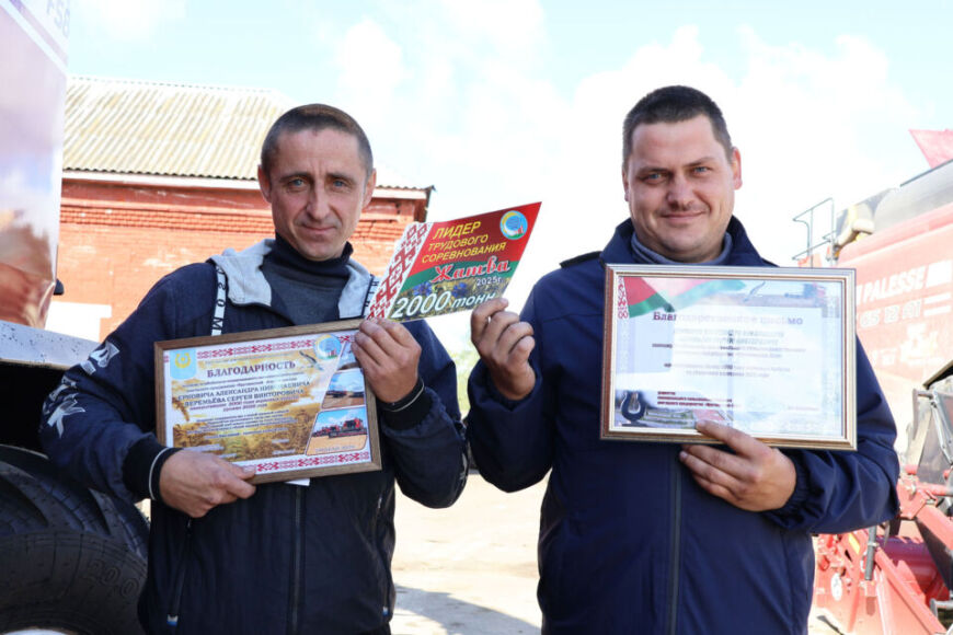 Высокую планку в 2000 тонн намолоченного зерна преодолел еще один комбайновый экипаж КСУП «Круглянский-Агро» в составе Александра Ерковича и Владимира Веремьева. Искренние поздравления передовикам прямо на мехдворе адресовали заместитель председателя райисполкома Анжела Лукашевич, директор сельхозпредприятия Валерий Измайлович, председатель райкома профсоюза работников АПК Алла Станкевич.