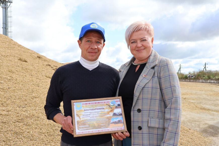 – Такого результата непросто было достичь, учитывая те погодные условия, которые сложились в сезон жатвы, – подчеркнула, обращаясь к передовикам, Анжела Лукашевич. – Желаю вам, чтобы погода сопутствовала вашей работе, чтобы техника не подводила вас, чтобы бункер наполнялся как можно быстрее.