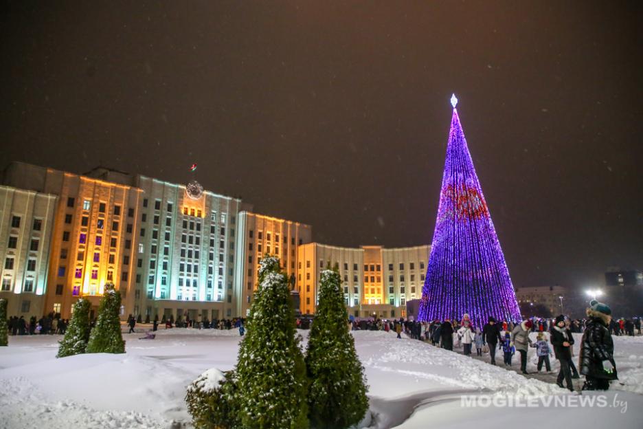 В Могилеве на площади Ленина зажгли главную ёлку области. Ее высота составляет 38 метров, что делает новогоднюю красавицу самой большой в Беларуси. Вместо обычных лампочек елка украшена пиксельной гирляндой, которая управляется компьютерной программой. Вкупе световые элементы образуют конусообразный экран, на который транслируются световые изображения и композиции.