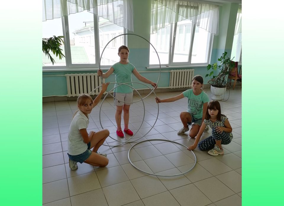 Познакомиться со спортивными снарядами, потренироваться, используя их, и посоревноваться в умении владеть ими ребята имели возможность в День обруча, День скакалки, День мяча и День гиревого спорта. Лучшими во владении обручем и скакалкой оказались, конечно же, девочки: Кристина Менькович, Алиса Бычкова и Алина Воронцова.