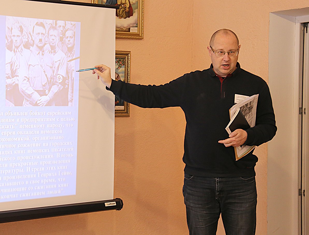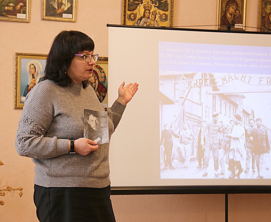 Холокост (1933–1945 гг.) представлял собой систематический и спонсируемый государством режим преследований и убийств нацистами примерно шести миллионов европейских евреев (в том числе около 1,5 млн. детей). В основе Холокоста лежал антисемитизм (ненависть к евреям или предубеждения против них). Проникновенный экскурс в историю тех поистине ужасающих событий, когда жертвами массовых сожжений, уничтожений в газовых камерах, расстрелов становились люди, миллионы людей, для круглянских школьников провели сотрудники музея Дмитрий Шелковский и Маргарита Цыганкова. С первых же минут общения, стараясь во- влекать своих юных собеседников в открытый диалог, Дмитрий Николаевич спрашивал, знают ли ребята, что за памятный день отмечается 27 января, что такое Холокост («всесожжение, уничтожение огнём»), задавал другие вопросы по теме. Он говорил о том, как яро ненавидел Гитлер и его приспешники граждан еврейской национальности и сколько судеб перечёркнуто и искалечено сторонниками нацистской идеологии.