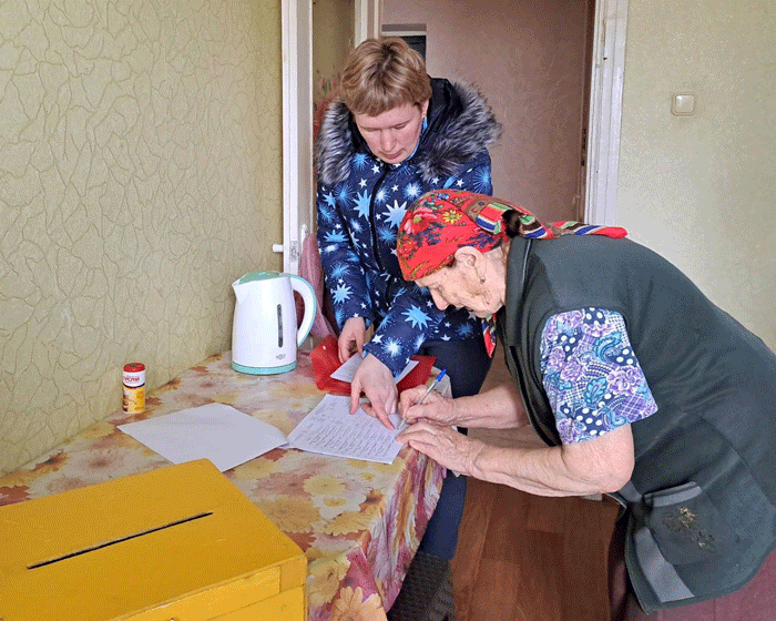 Члены участковых избирательных комиссий обеспечивают возможность участия в голосовании избирателям, которые по уважительным причинам не могут прибыть в помещение для голосования лично (в силу возраста, по состоянию здоровья, в связи с необходимостью ухода за лицами, в этом нуждающимися, и иным). И везде их встречают приветливо. Ведь, как правильно поётся в нашем гимне:
